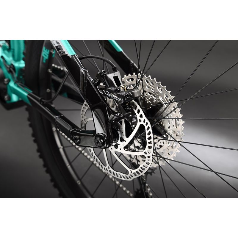 Le vélo est équipé d’une roue de 29 Pouces + à l’avant pour vous permettre de franchir plus facilement les obstacles et d’une roue 27,5+ à l’arrière pour trouver la traction et la motricité nécessaire dans les descentes.